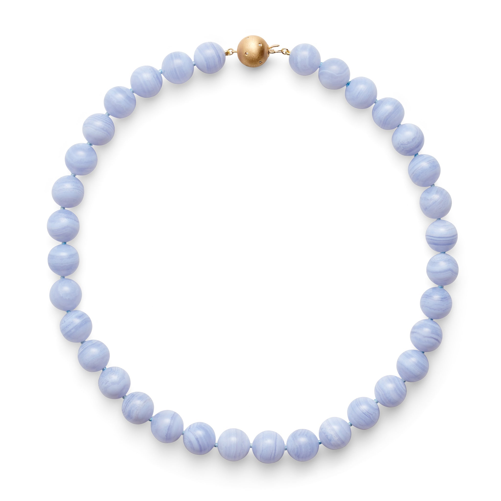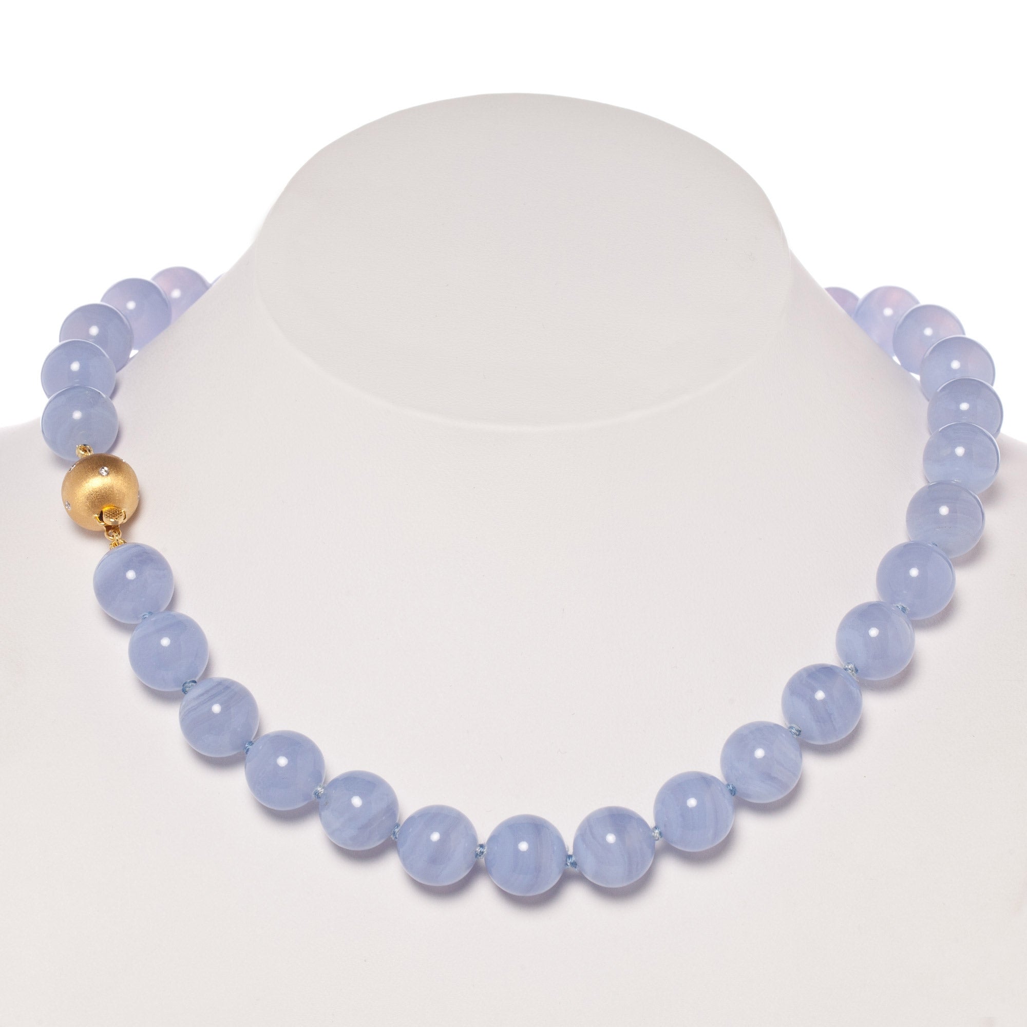 A stunning blue lace agate necklace with a diamond-embellished yellow gold clasp. Since 1861, Gump's has been a destination for jewelry that is distinctive, extraordinary and timeless. To ensure each piece is created to our exacting standards, the expert in-house jewelry team at Gump's oversees every step of the production process. The result is a statement of pure elegance.