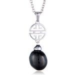 Black Jade & Silver Shou Pendant Necklace