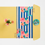 Classic stripes meet vibrant florals in this cotton table runner, printed in Italy using techniques inspired by traditional Indian woodblock artistry. The bold contrast brings a playful elegance to everything from everyday dining to festive gatherings.