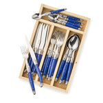 Laguiole sets the standard for enduring quality and impeccable French style. In a tradition dating back more than a hundred years, these handcrafted pieces are precision forged of stainless steel with riveted ivory resin handles. Set includes six 4-piece place settings: dinner knife, dinner fork, soup spoon and coffee spoon.
