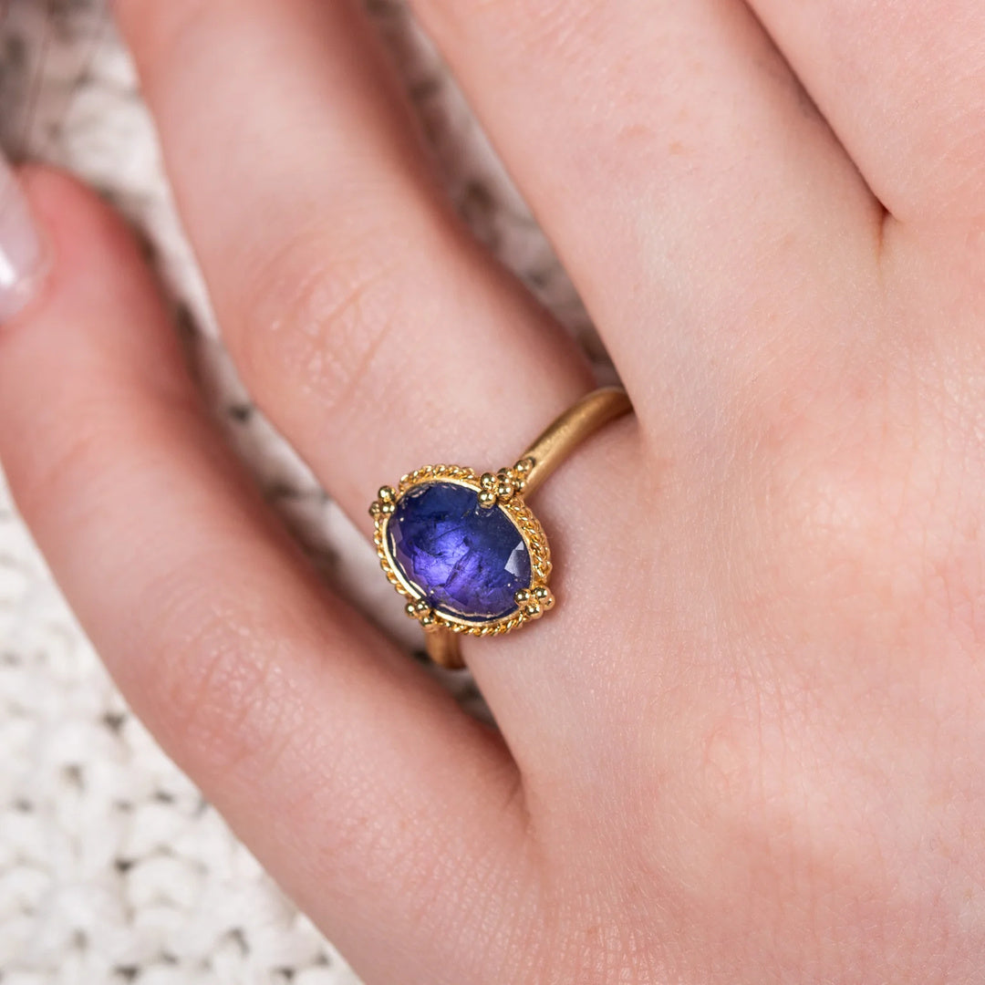 Sara Freedenfeld’s jewelry blends Old World goldsmithing with textile-inspired settings —cradling gemstones in handwoven gold that flows like fabric.