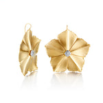 Sculpted gold petals converge around a cluster of brilliant diamonds, forming a radiant starflower motif. The crisp geometry and textured finish create earrings that balance bold presence with refined detail.