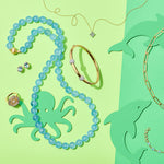 Our long necklace strings together smooth beads of aquamarines, a versatile gemstone that looks cool in the spring and summer and classic in the fall and winter.