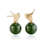 Gump's x Gudrun Langner Ginkgo Green Nephrite Jade Drop Earrings