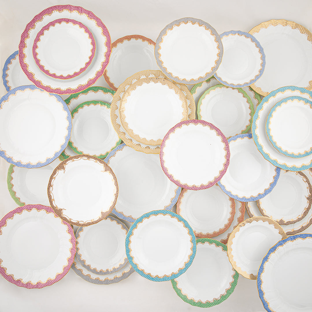 Handmade at its studio near Budapest, Herend's endearing porcelain creations are instantly recognized by a signature pattern that dates back to 1858. According to legend, a fish-scale pattern on a Chinese plate inspired a Herend craftsman to paint a similar motif onto a rooster figurine, mimicking the look of feathers.