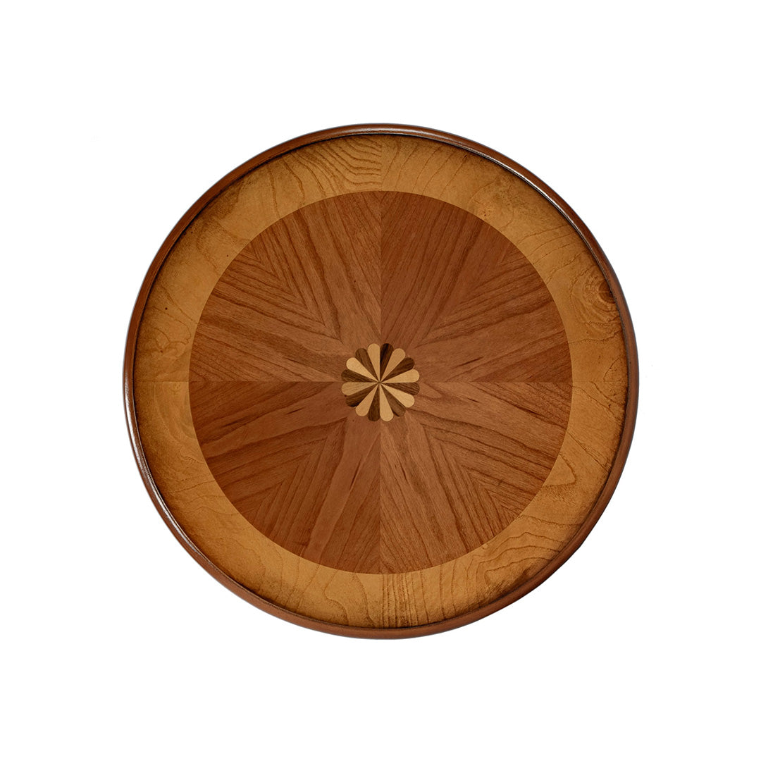 With its graceful curves and rich burl veneer, this side table blends vintage character with modern elegance. Crafted from poplar and hardwood using mortise and tenon joinery, it features a warm honey finish, splayed legs and a lower shelf for added functionality. A refined piece that adds depth and polish to any room.