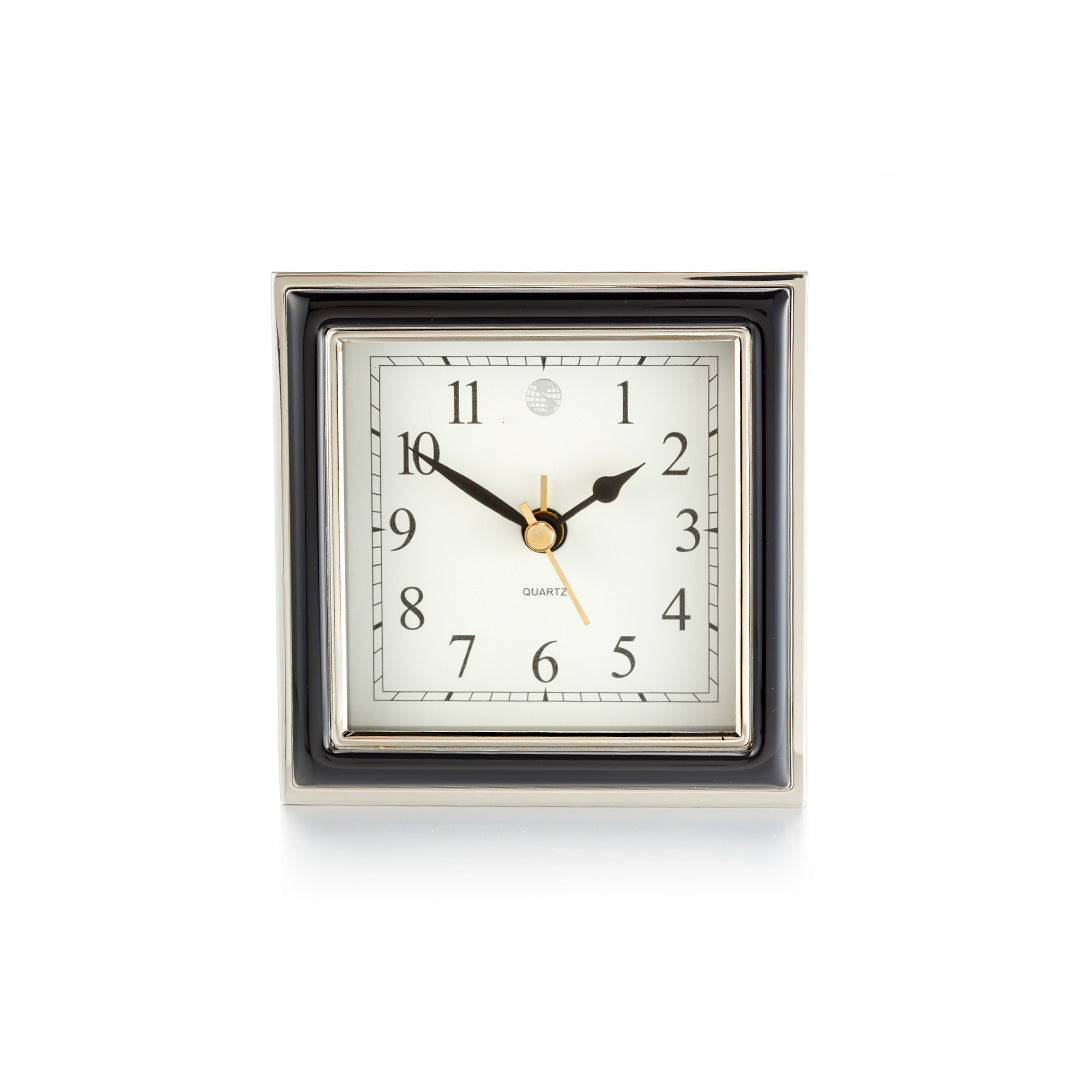 Small in size but big on charm, this silver-tone clock, framed with black enamel, keeps perfect time with quiet quartz movement. A thoughtful gift for anyone who appreciates the little details that keep life beautifully on schedule.