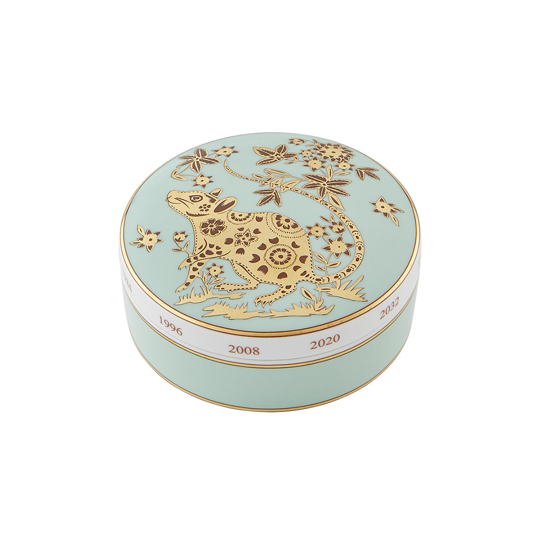 The Chinese Zodiac, known as Sheng Xiao, is based on a twelve-year cycle, each year relating to a different animal sign. The year a person is born determines their animal sign. The perfect gift for celebrating a loved one born under the sign of the Rat, this porcelain box features a gold rendering of the animal on the lid and the years related to the sign along the side. Founded in 1824 by José Ferreira Pinto Basto, Vista Alegre is a storied Portuguese brand celebrated for its expertly crafted glassware and ceramics.