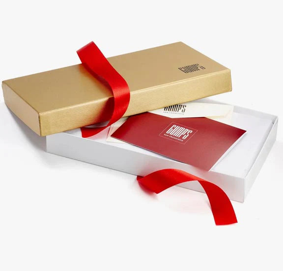 With our wrapping service, your purchase can arrive gift ready—presented in our signature gold-lidded box, hand-tied with a satin ribbon.