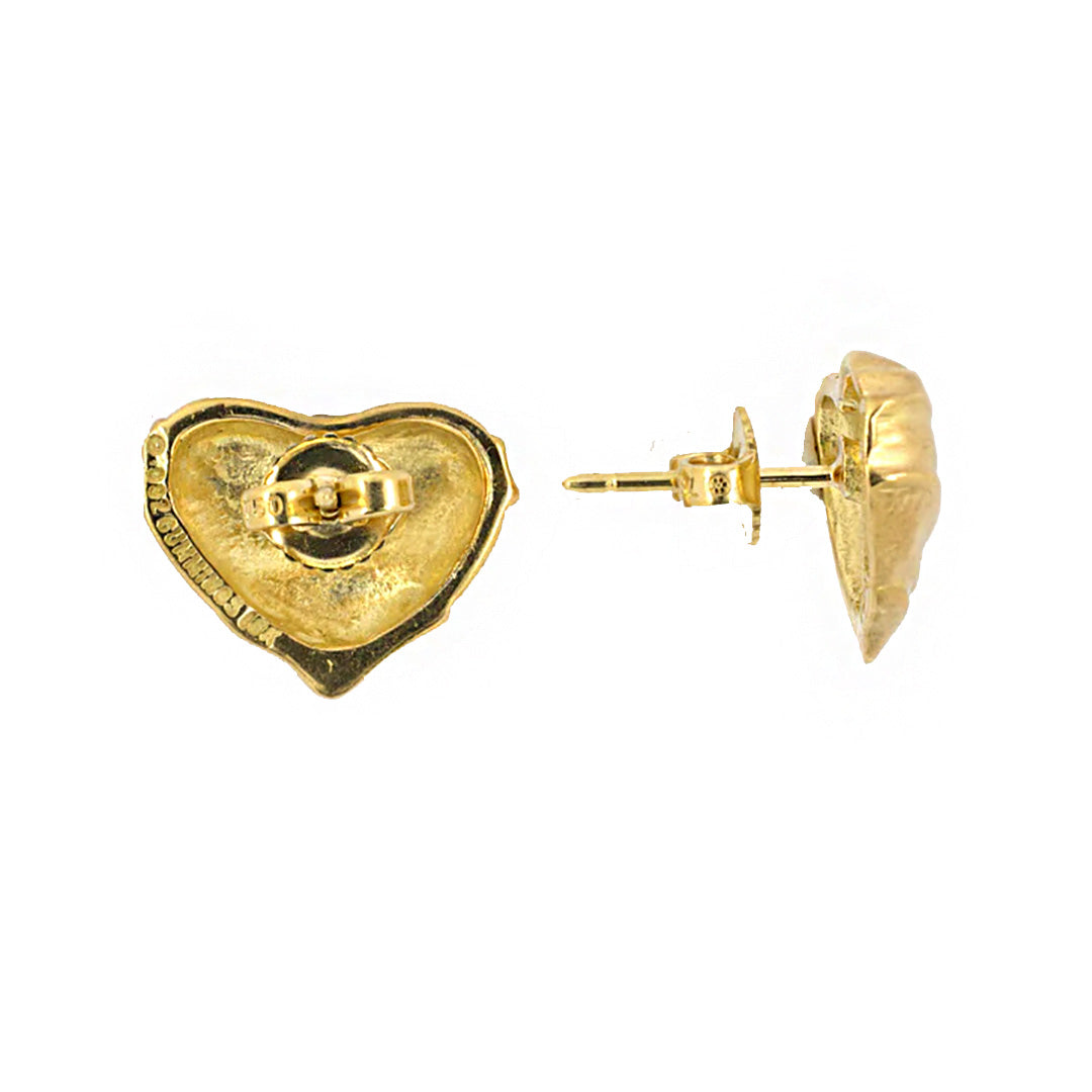 These sculptural heart earrings by Angela Cummings feature softly contoured gold surfaces that flow in gentle folds across the form. The fluid texture gives the classic heart motif a modern, dimensional character while maintaining a warm, romantic presence. Bold yet elegant, the design reflects the designer’s distinctive approach to expressive gold jewelry.