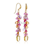 Featuring a combination of multi-color sapphires, amethyst and yellow beryl, clusters of vibrant briolettes cascade in shimmering tiers on these colorful earrings. Each gemstone is delicately suspended to create fluidity and lightness with every turn.