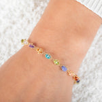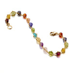 A vibrant medley of faceted gems — ranging from soft pastels to rich jewel tones — is intricately woven with warm gold. Each stone is hand-selected for its unique hue, bringing together an artful spectrum of color and character in a delicate silhouette.
