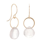 Gently hanging from slender gold hooks, these rose quartz drops offer a serene grace that subtly elevates any occasion with their soft, warm glow.