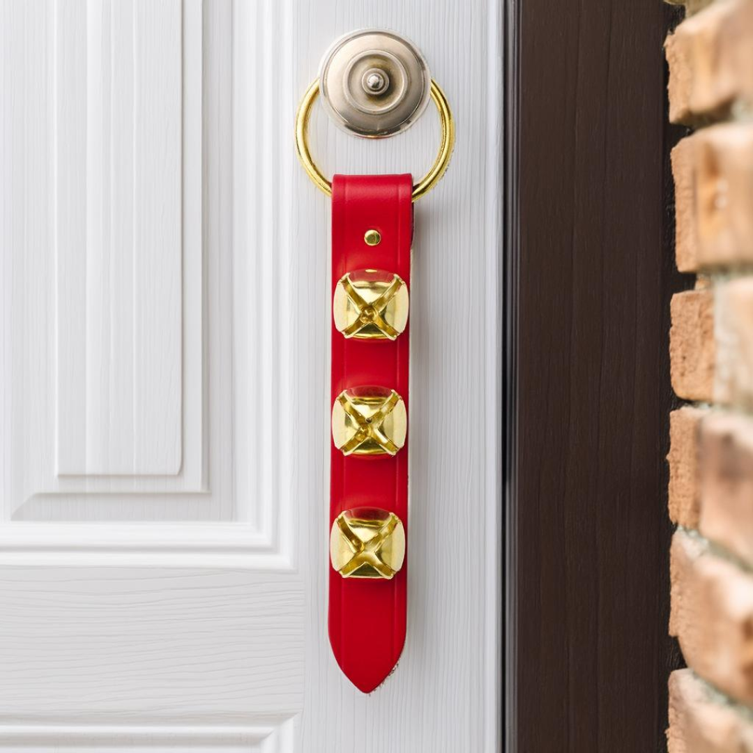Ring in the season with our sleigh bell door hanger. An American workshop handcrafts each one from premium tanned leather and gold-toned steel bells, which sound a cheerful welcome when you open the door.